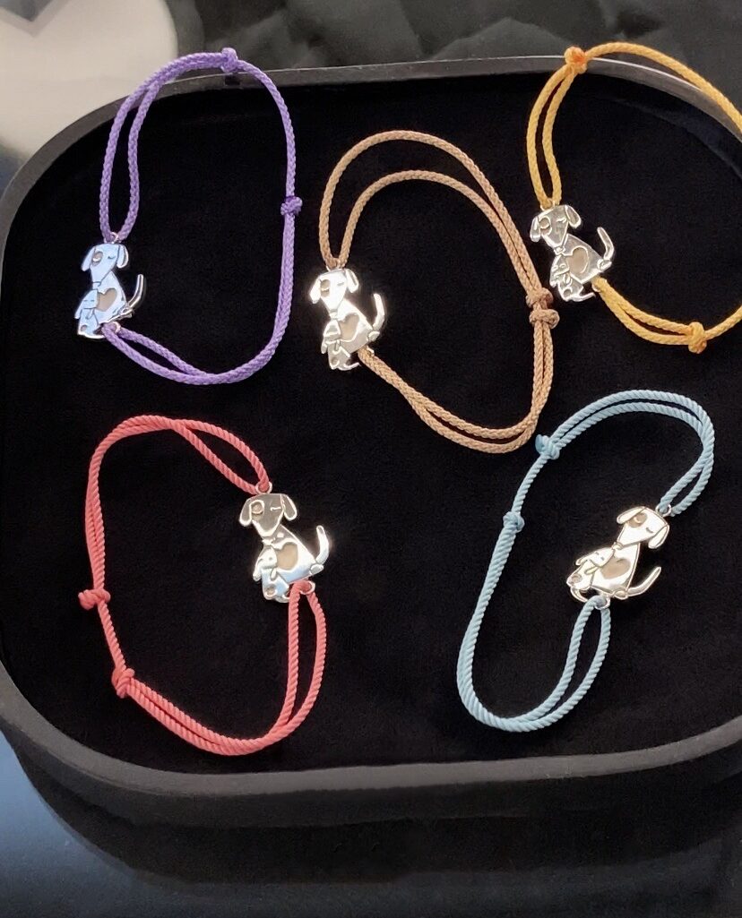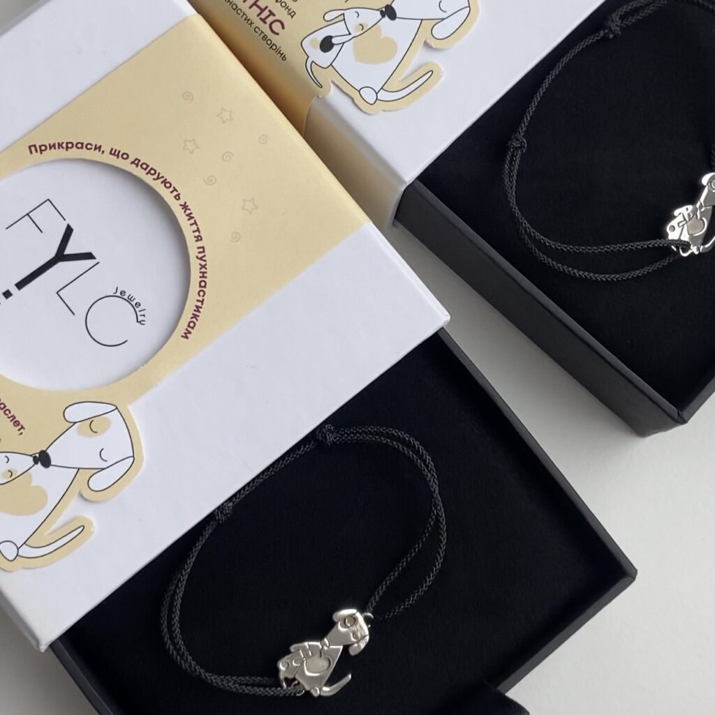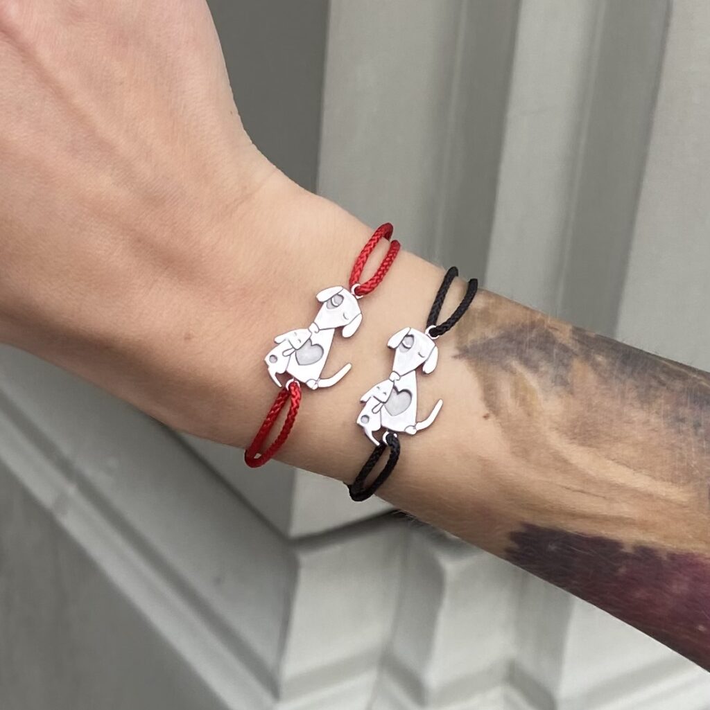 Браслет з італійським текстилем та срібним мотивом з песиками