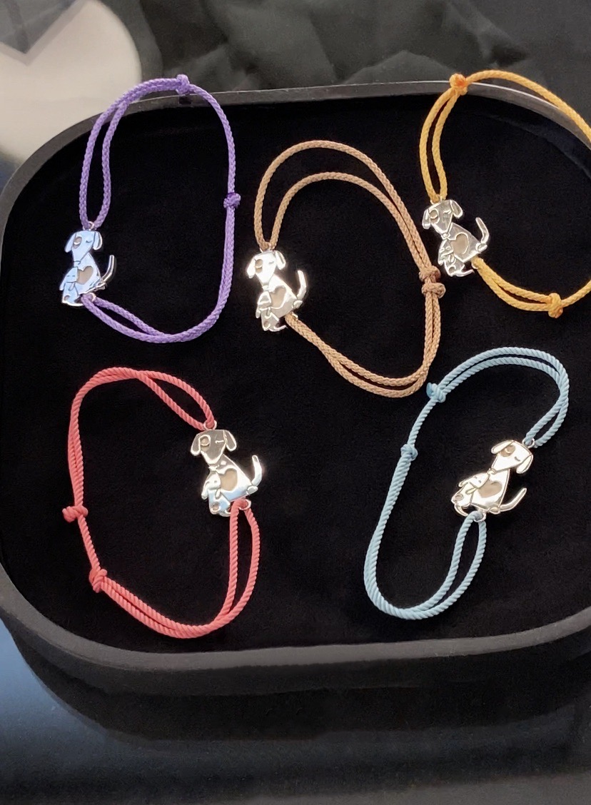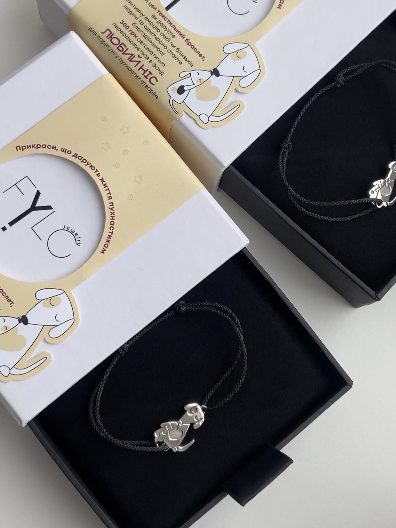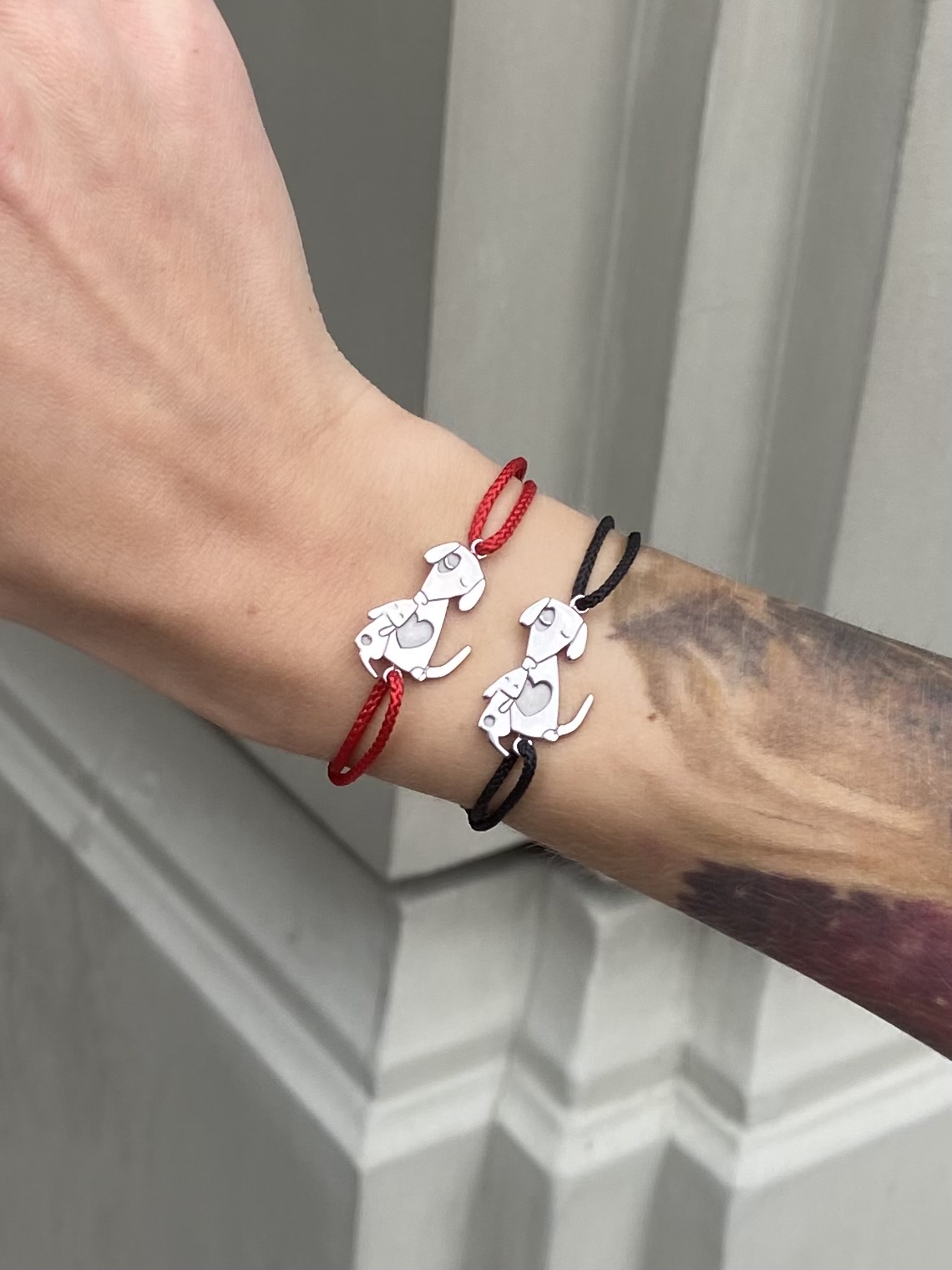 Браслет з італійським текстилем та срібним мотивом з песиками