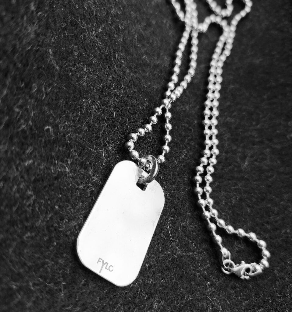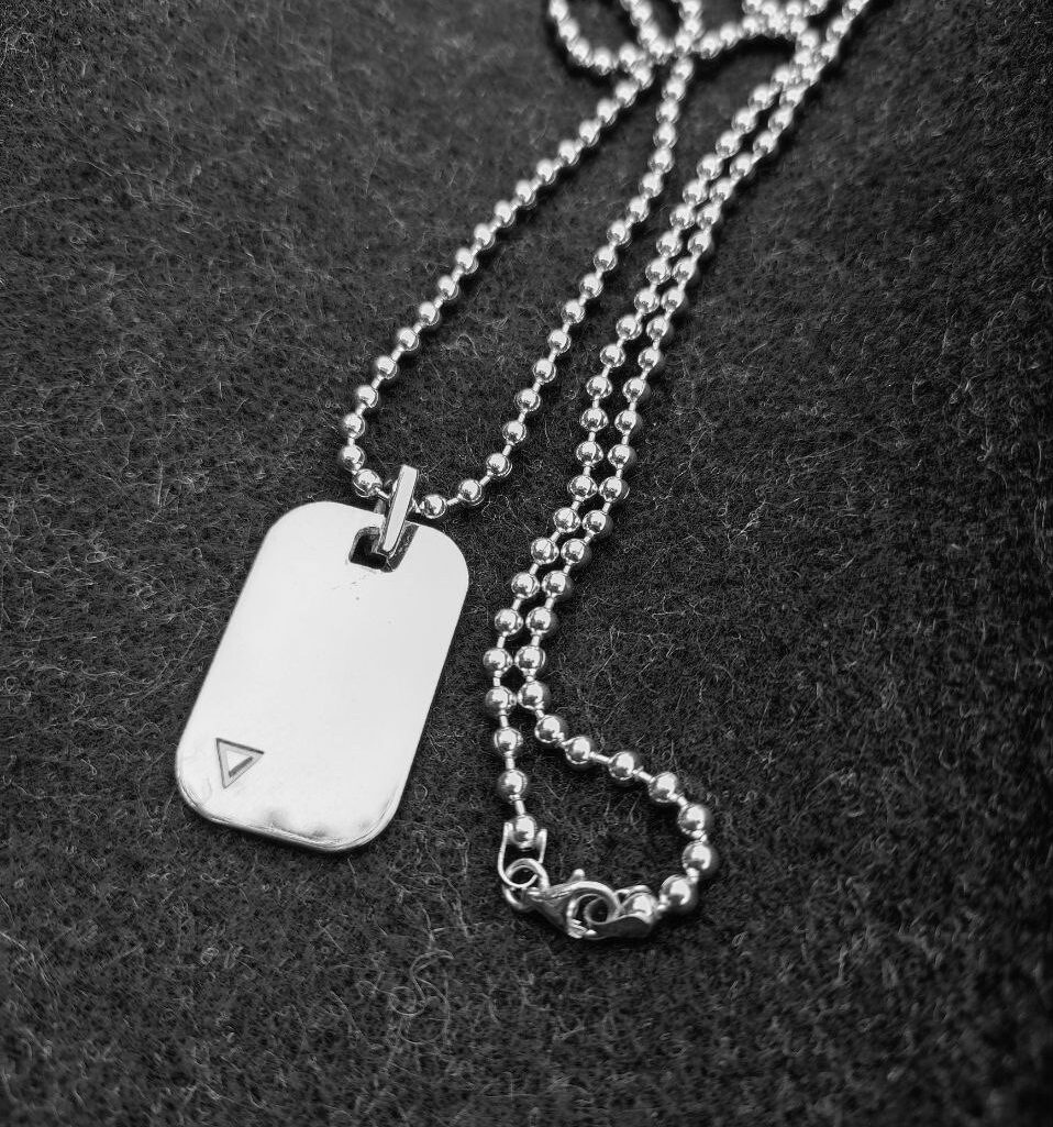 Чоловіче кольє з жетоном. На жетон можна додатково нанести гравіювання: дату, символи, ініціали