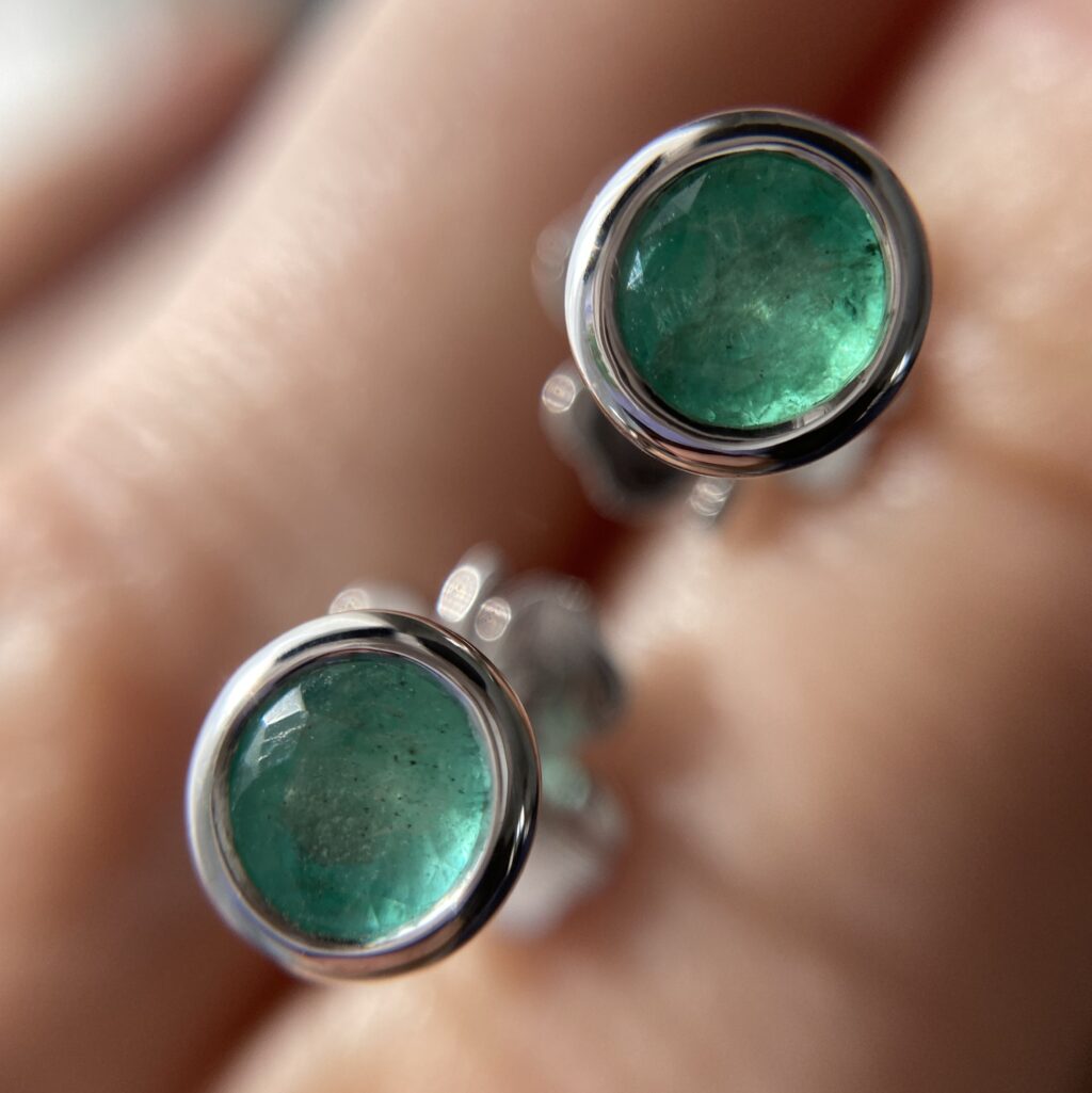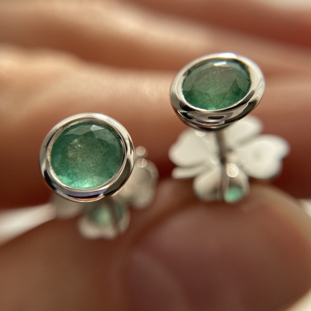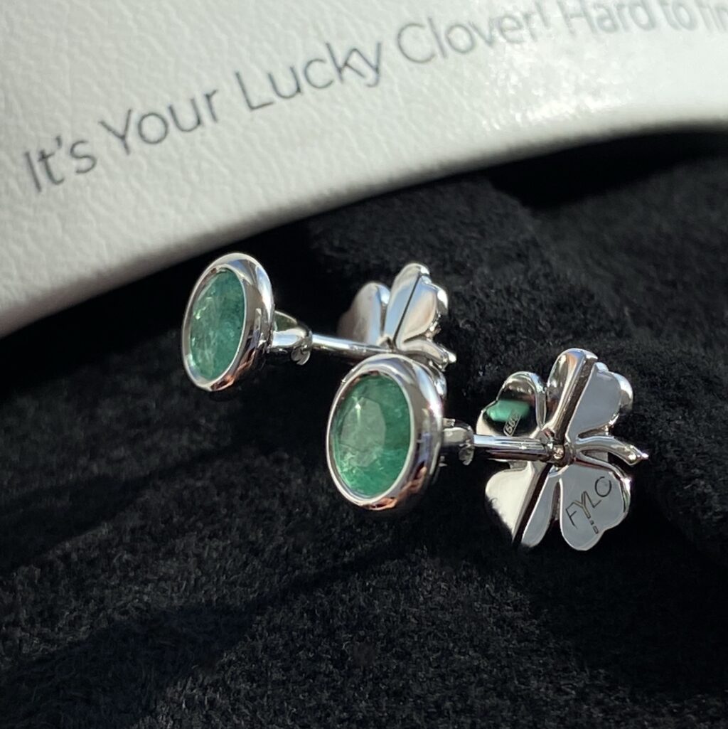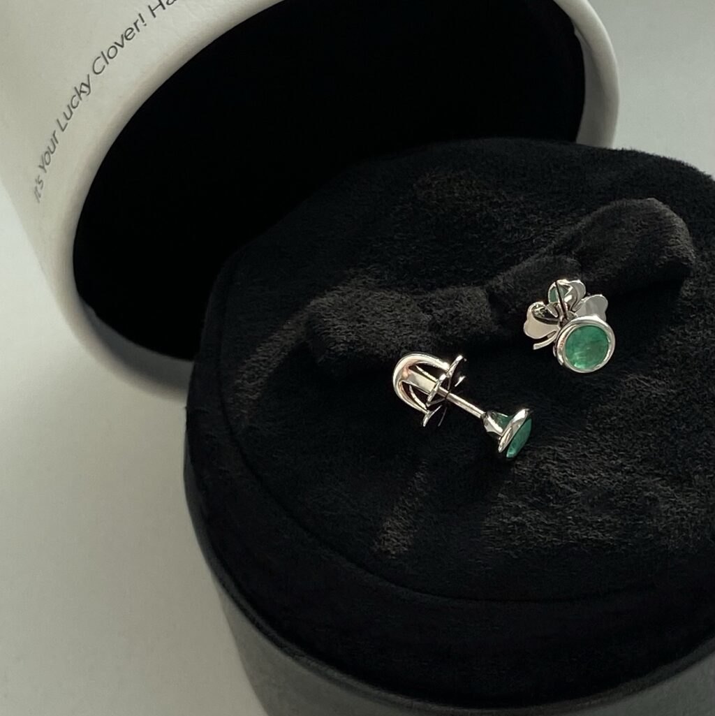 Сережки-пусети зі смарагдами із застібками у вигляді конюшини