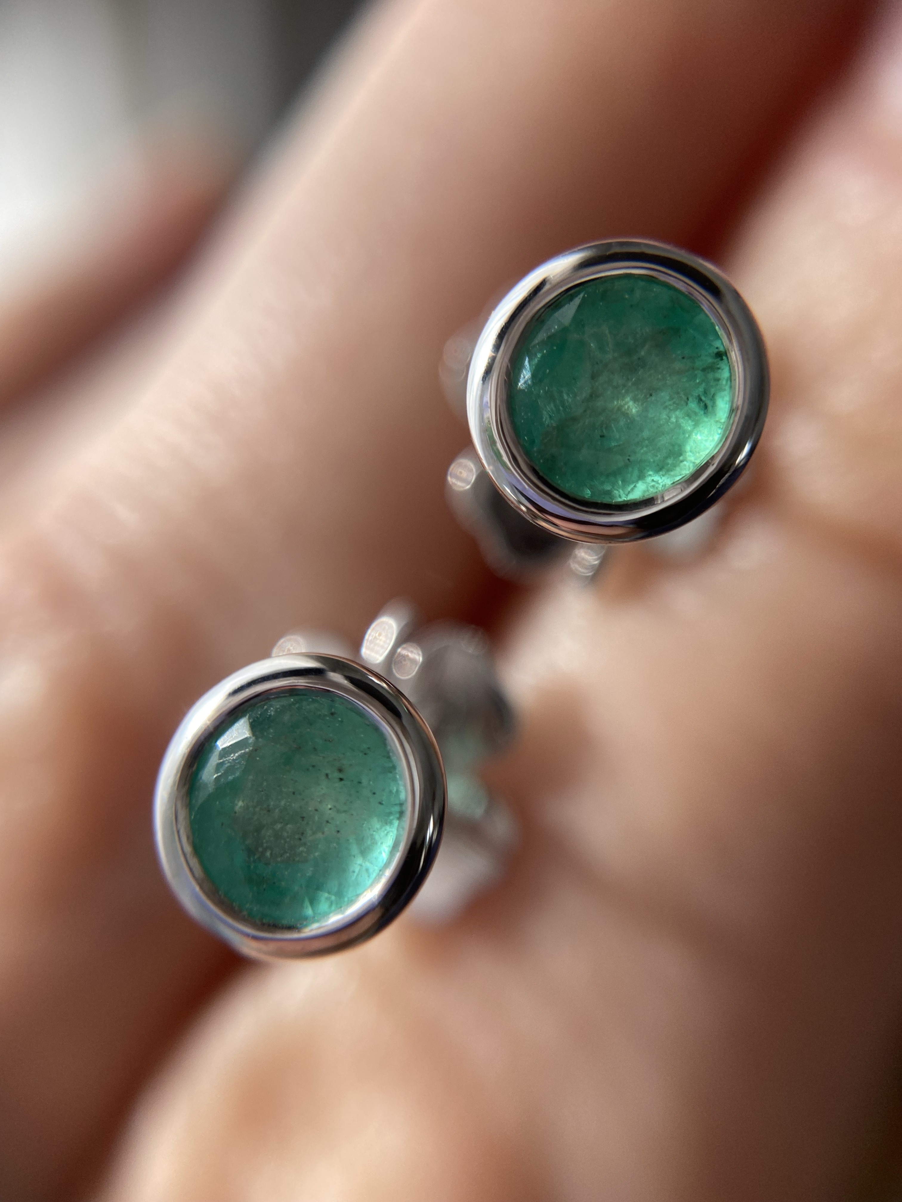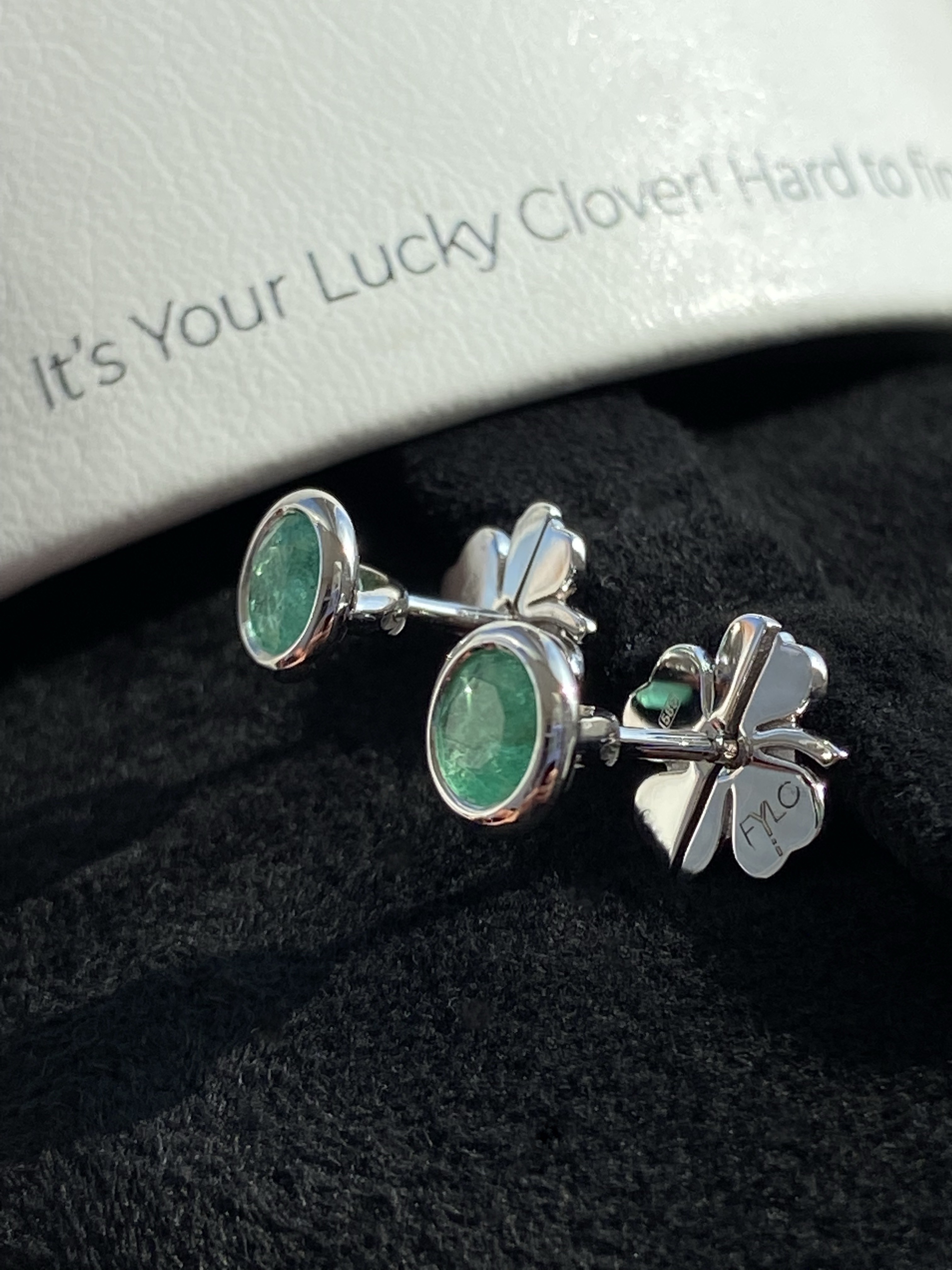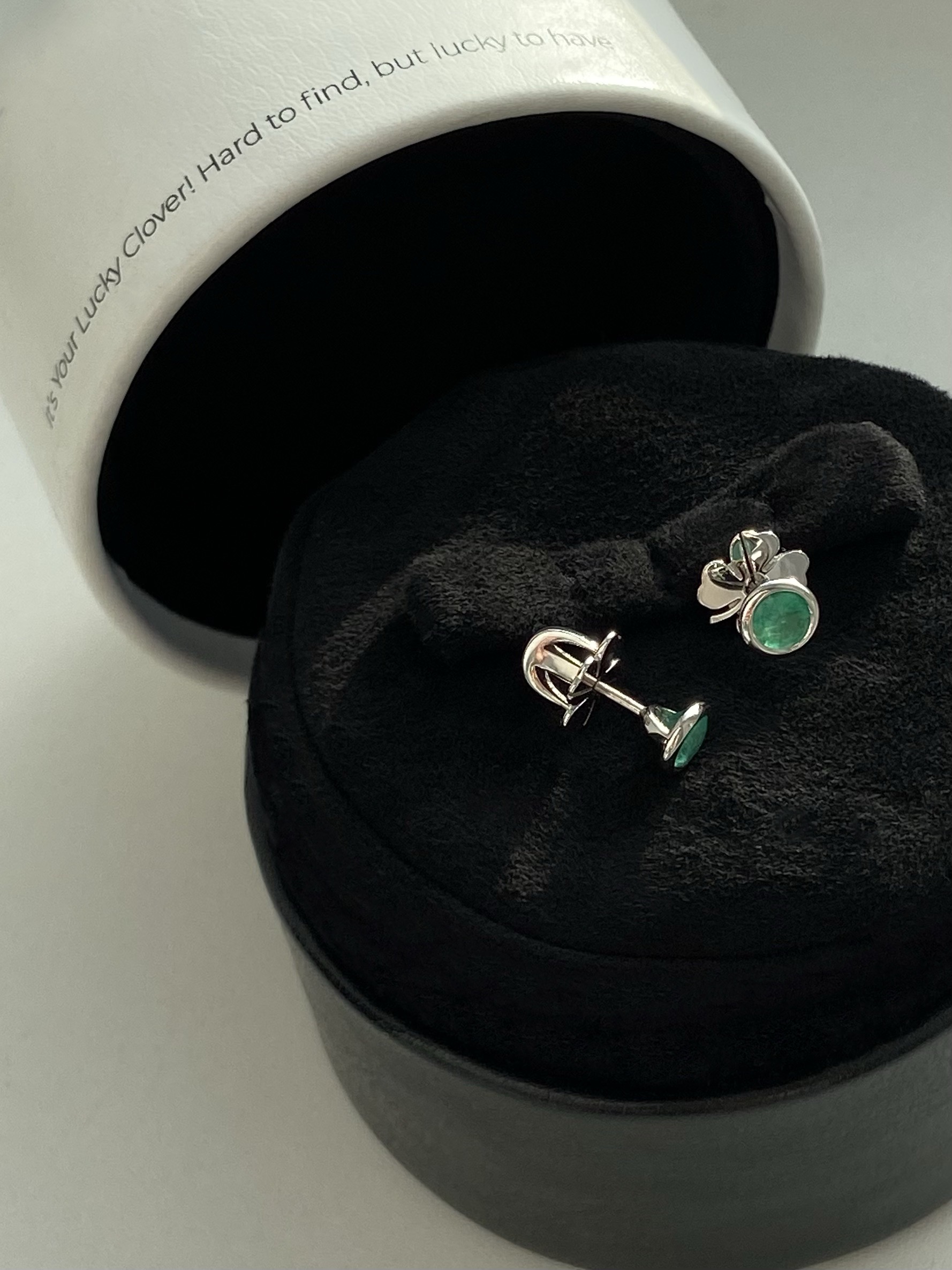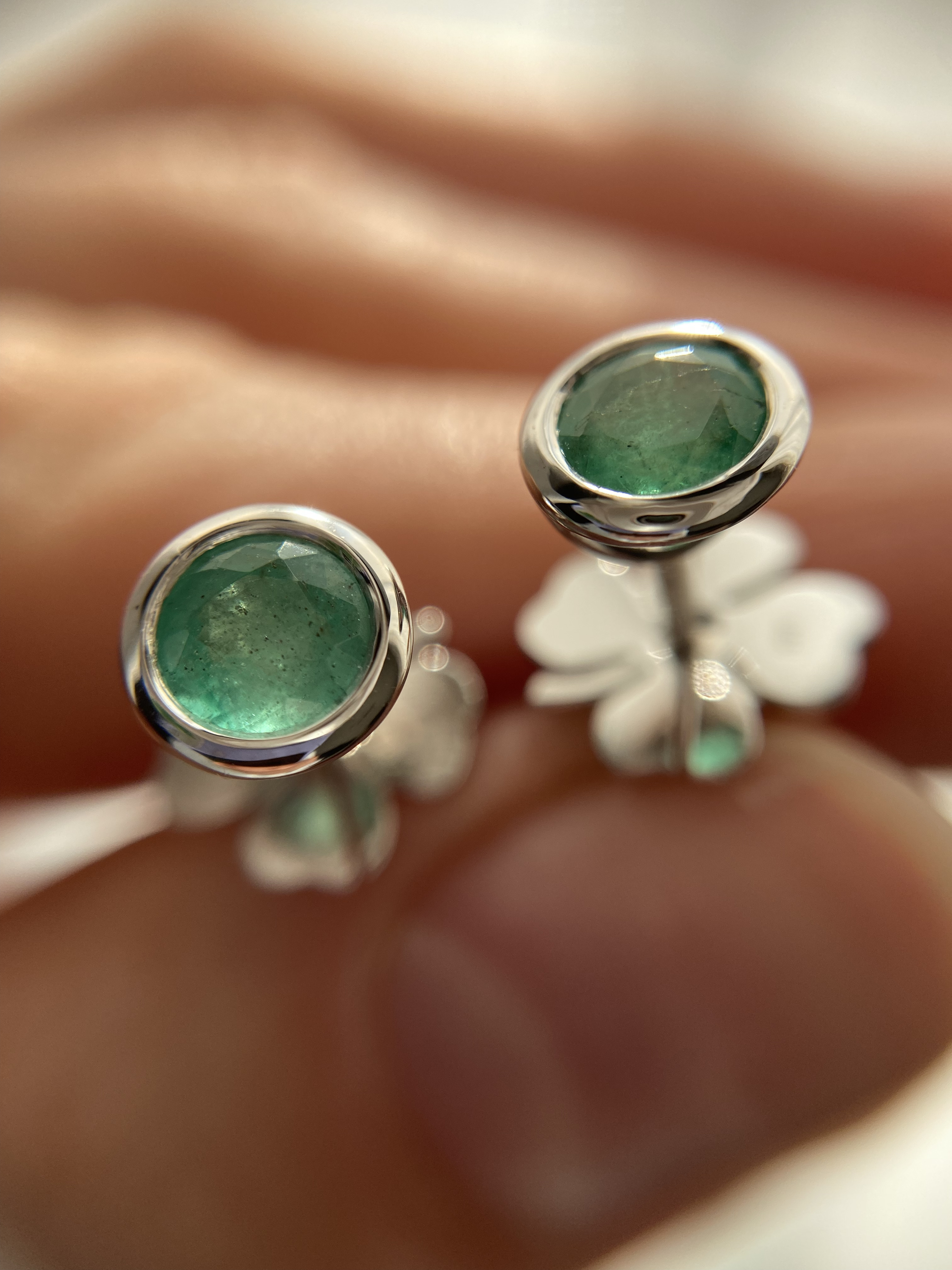 Сережки-пусети зі смарагдами із застібками у вигляді конюшини