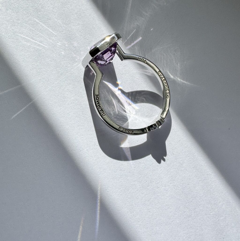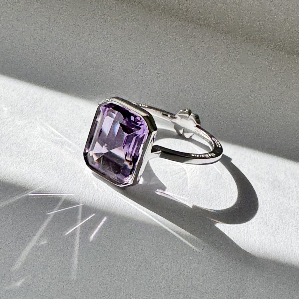 Перстень з аметистом. На полотно кільця можна нанести гравіювання.