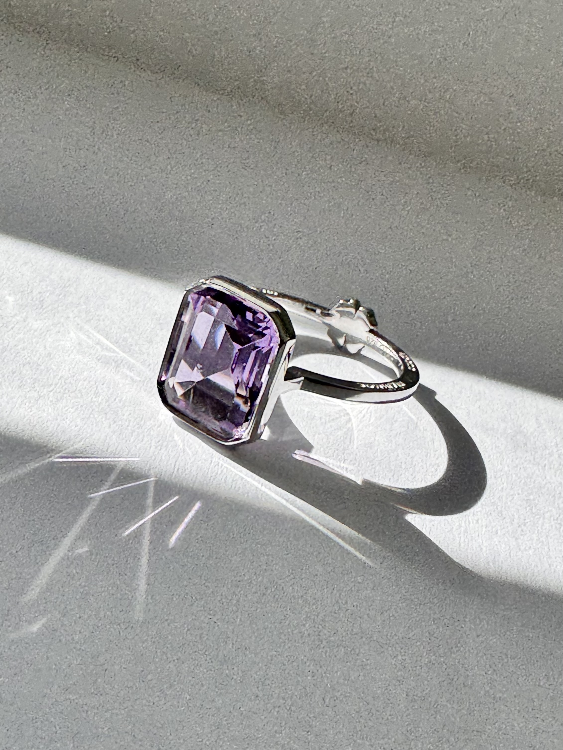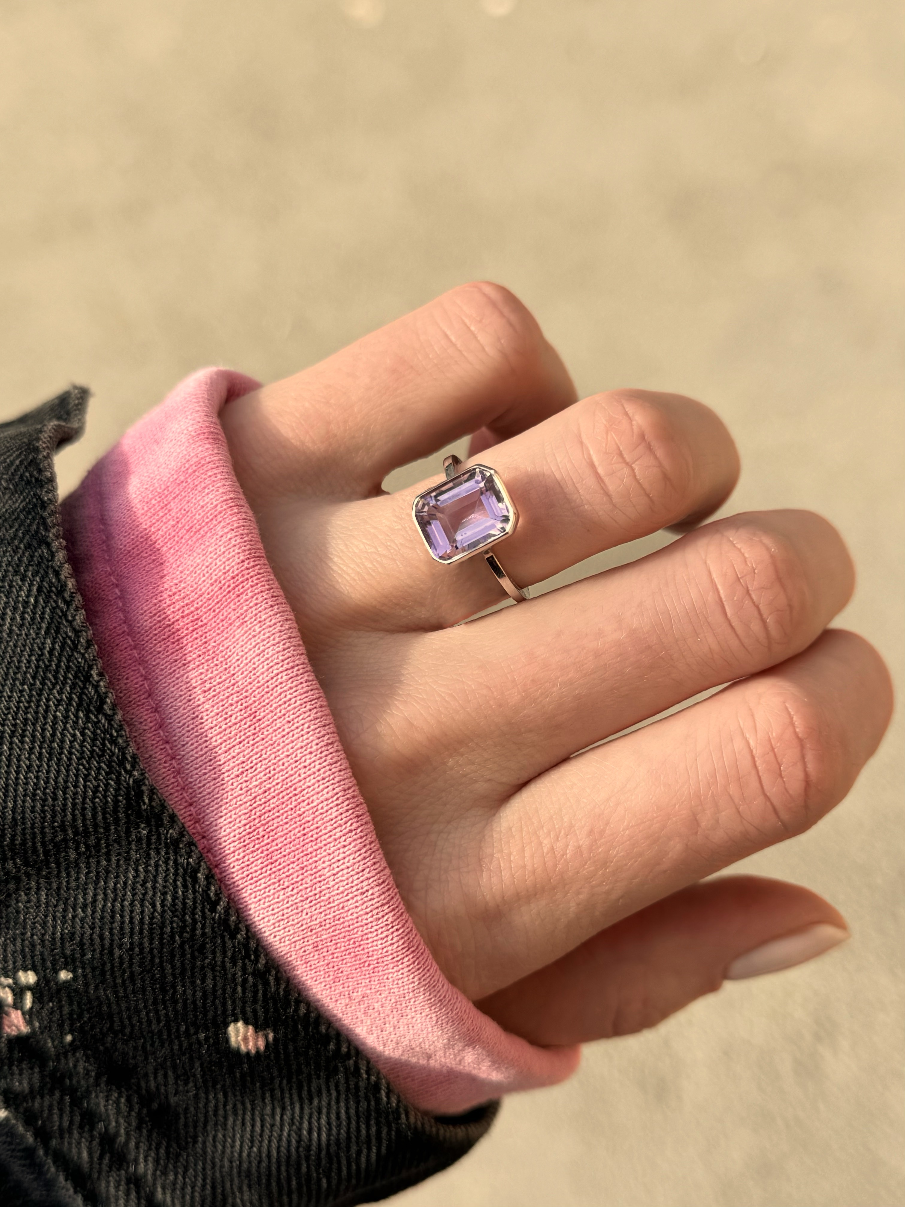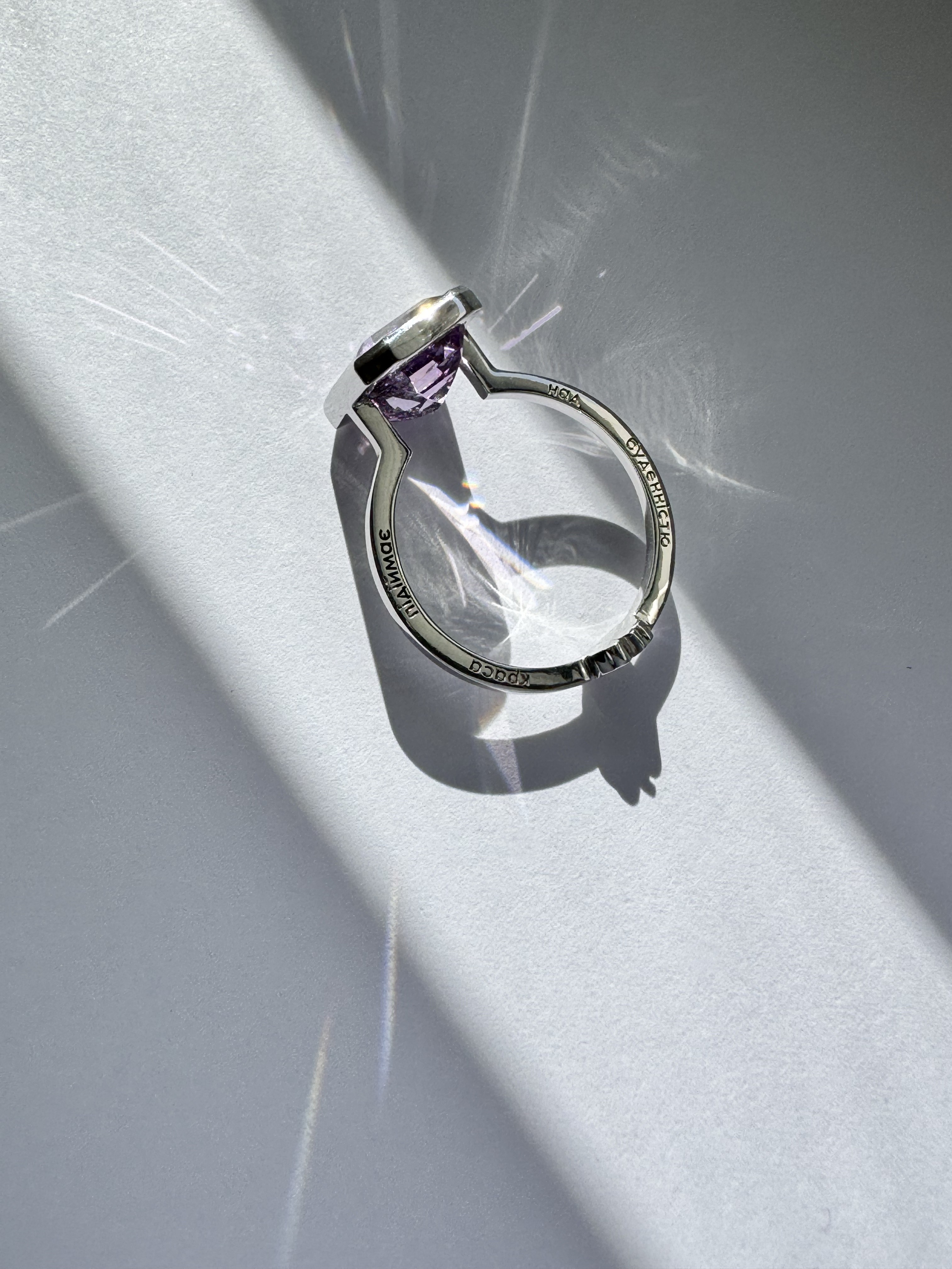 Перстень з аметистом. На полотно кільця можна нанести гравіювання.